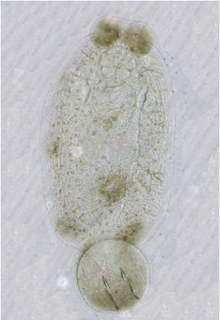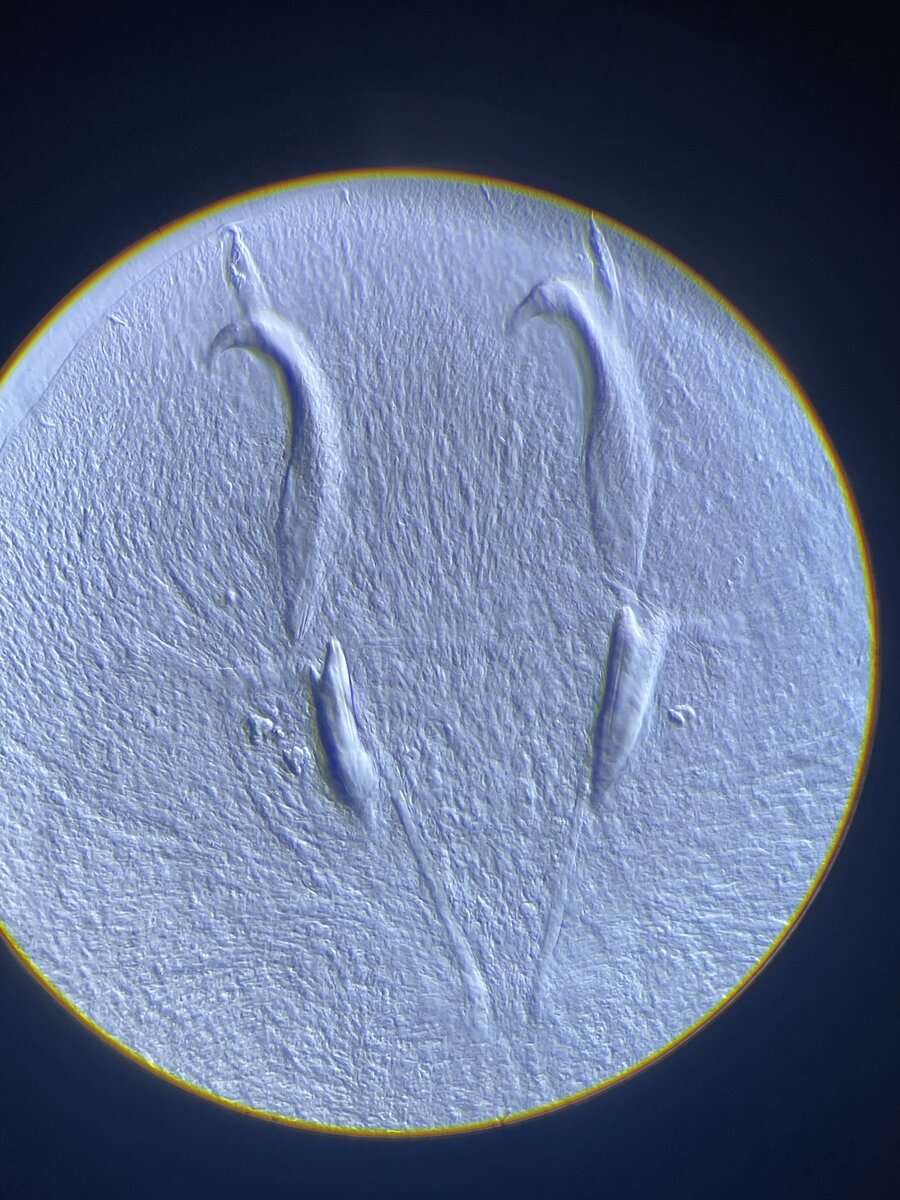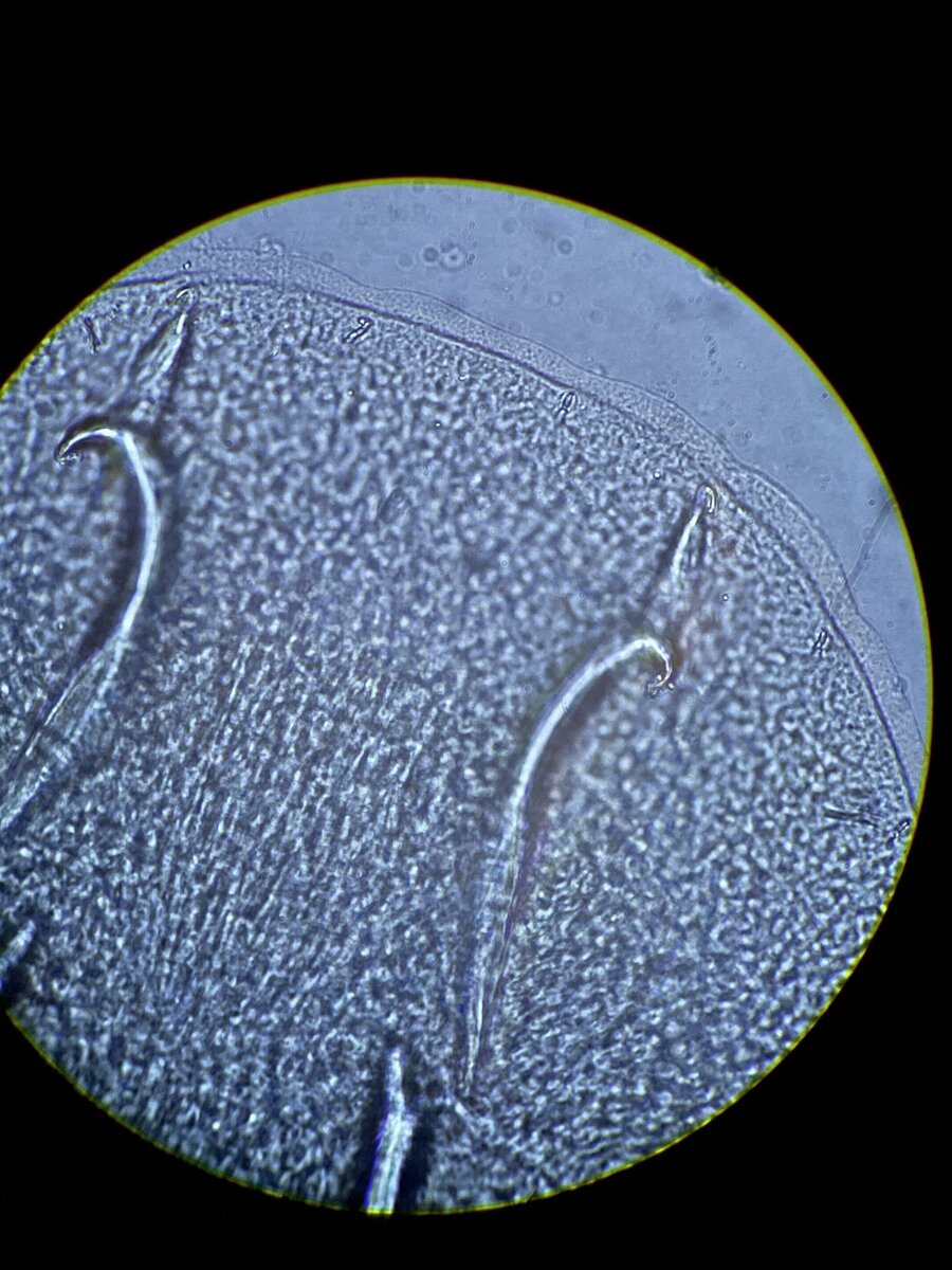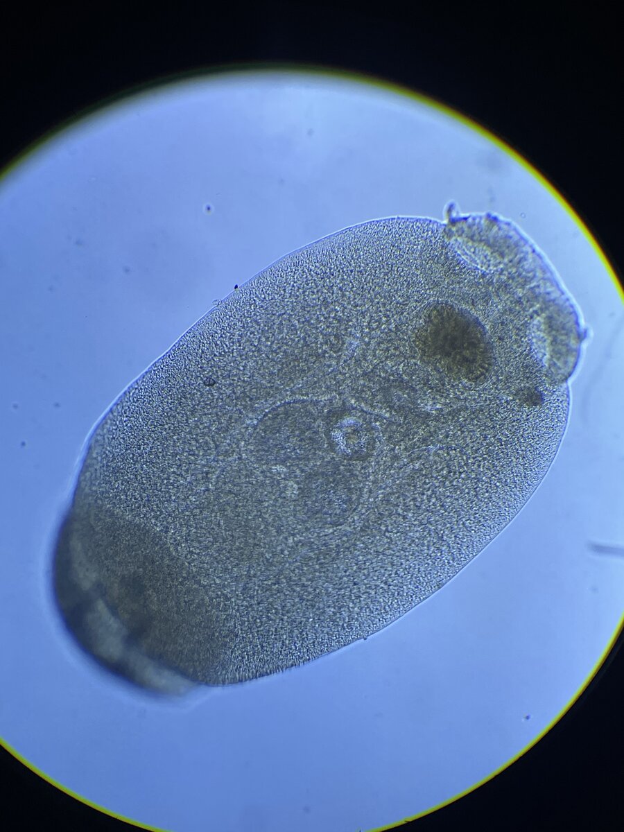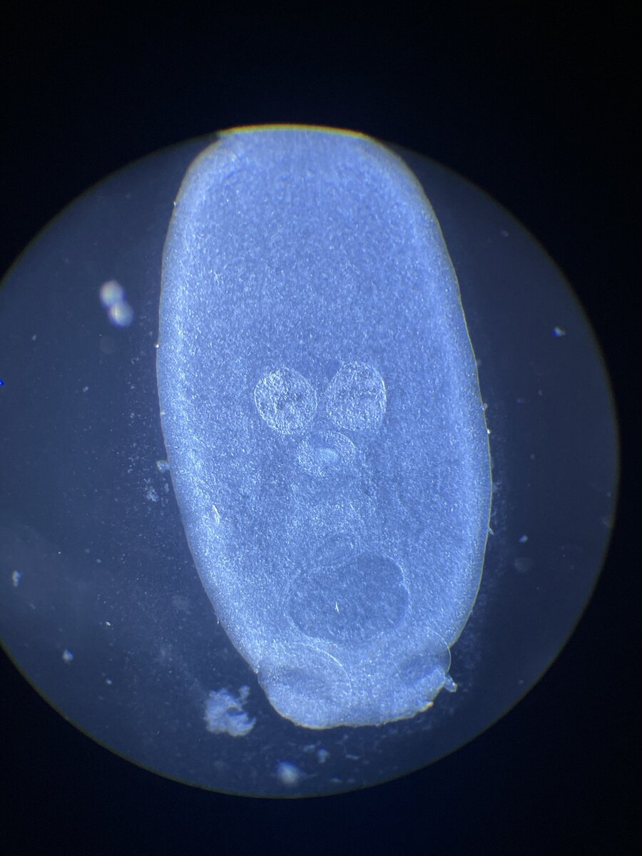 2. Gyrodactylidae – common in freshwater but can be found on saltwater fish. They have 16 hooks and are viviparous (live bearing). This family of flukes is considered “Russian dolls” meaning that a live daughter is inside the mother and the live daughter can also be carrying a live daughter.