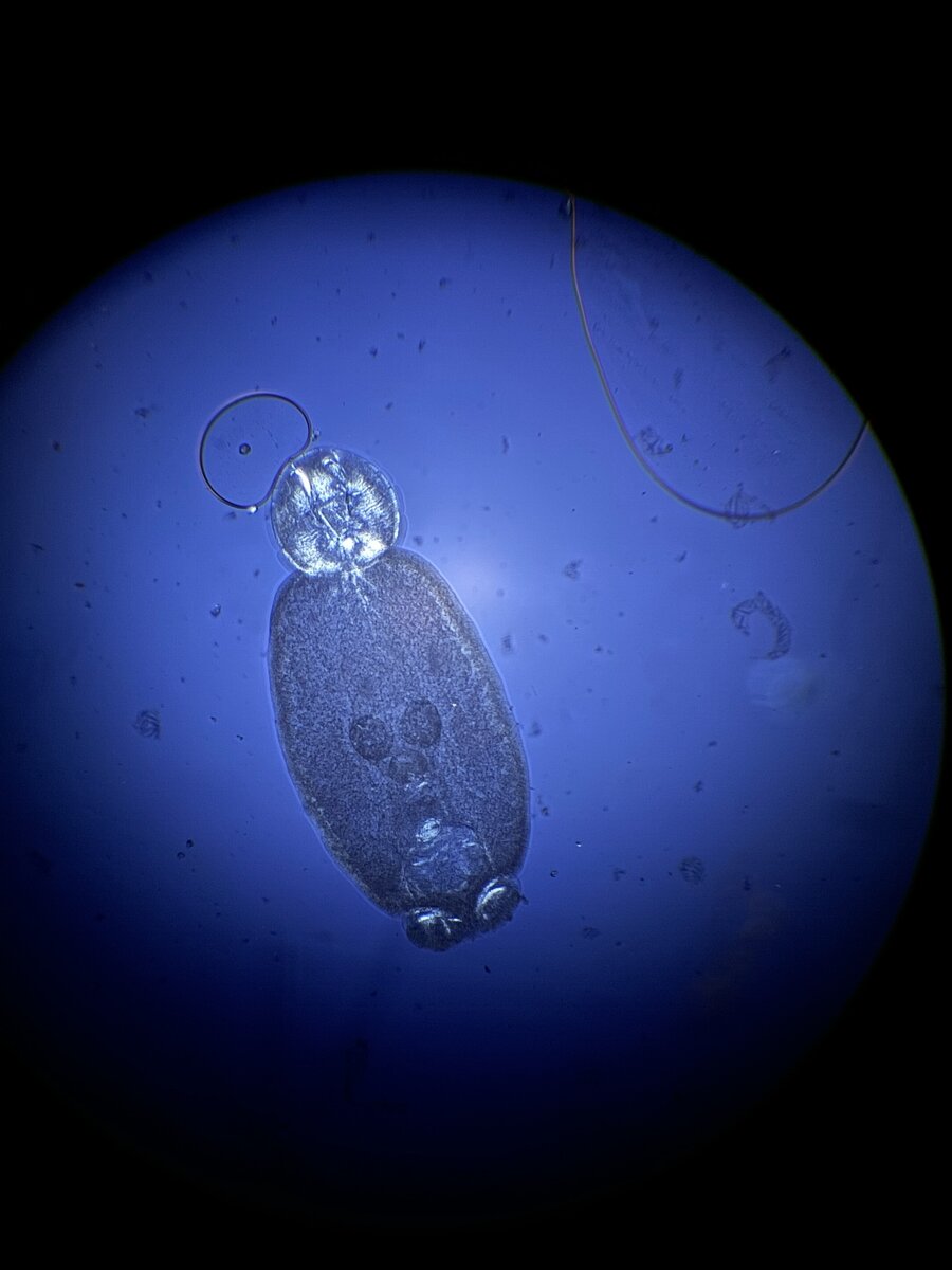 At 78-79° F eggs hatch within 4-6 days. Once the egg hatches the oncomiridium (ciliated larva) finds a host and crawls on the body to their preferred site. Once they dig their hooks into the fish’s flesh they feed on it for 17-19 days. At that point it has matured to an adult and it begins to lay eggs. The cycle starts over. At lower water temperatures, 34-36°F the timeline can extend to 5-6 months.